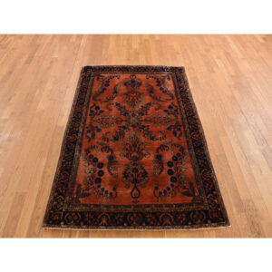 Vintage Hand Knotted Orange Wool Rectangle Oriental Rug 4’2″ x 6’4″