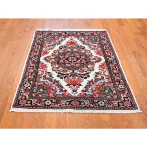 New Hand Knotted Ivory Wool Rectangle Oriental Rug 3’3″ x 5’2″