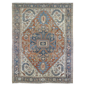 Vintage Hand Knotted Orange Wool Rectangle Oriental Rug 9’5″ x 12’7″