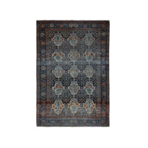Vintage Hand Knotted Blue Wool Rectangle Oriental Rug 4’2″ x 6’4″