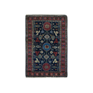 Vintage Hand Knotted Blue Wool Rectangle Oriental Rug 3’0″ x 4’6″