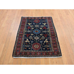 Vintage Hand Knotted Blue Wool Rectangle Oriental Rug 3’2″ x 4’8″