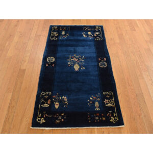Vintage Hand Knotted Blue Wool Rectangle Oriental Rug 4’0″ x 8’0″