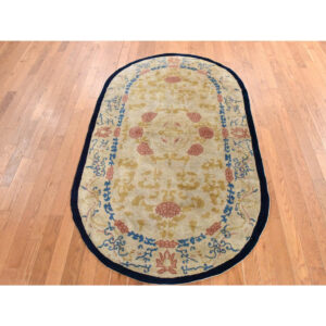Vintage Hand Knotted Brown Wool Oval Oriental Rug 4’0″ x 6’9″
