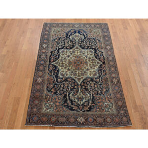 Vintage Hand Knotted Brown Wool Rectangle Oriental Rug 3’3″ x 5’5″