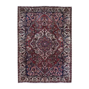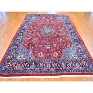 Vintage Hand Knotted Red Wool Rectangle Oriental Rug 7’0″ x 10’4″
