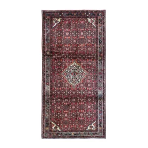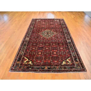 Vintage Hand Knotted Red Wool Rectangle Oriental Rug 4’10” x 9’2″