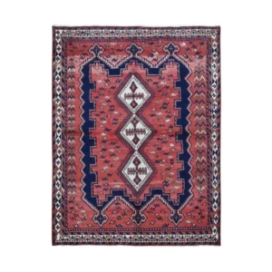 Vintage Hand Knotted Red Wool Rectangle Oriental Rug 4’1″ x 6’4″