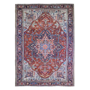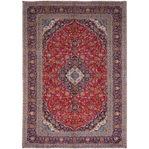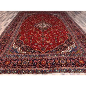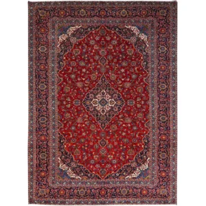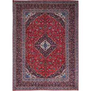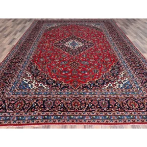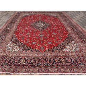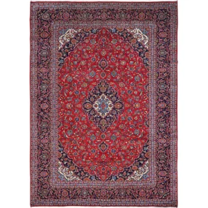 Vintage Hand Knotted Red Wool Rectangle Oriental Rug 9’6″ x 13’5″