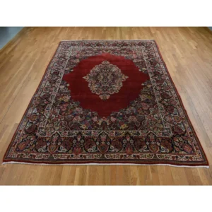 Vintage Hand Knotted Red Wool Rectangle Oriental Rug 9’5″ x 13’0″