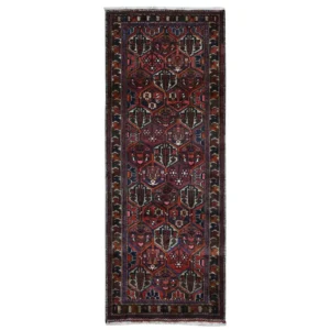 Vintage Hand Knotted Red Wool Runner Oriental Rug 3’8″ x 8’0″