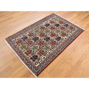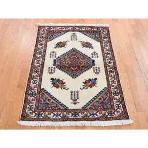 New Hand Knotted Ivory Wool Rectangle Oriental Rug 2’9″ x 4’0″