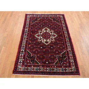 New Hand Knotted Red Wool Rectangle Oriental Rug 3’3″ x 4’7″