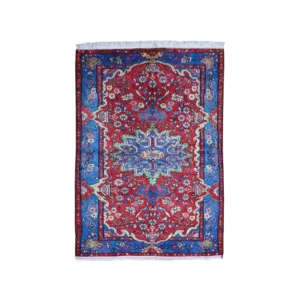 New Hand Knotted Red Wool Rectangle Oriental Rug 4″ x 4′
