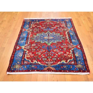 New Hand Knotted Red Wool Rectangle Oriental Rug 3’8″ x 5’0″