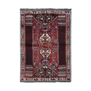 New Hand Knotted Red Wool Rectangle Oriental Rug 4’0″ x 7’0″