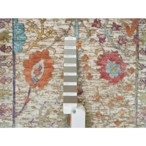 New Hand Knotted Beige Wool & Silk Rectangle Oriental Rug 2’3″ x 3’2″