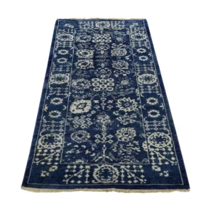 New Hand Knotted Blue Wool Rectangle Oriental Rug 2’0″ x 3’0″