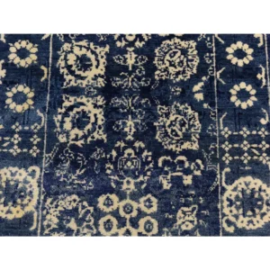 New Hand Knotted Blue Wool & Sari Silk Rectangle Oriental Rug 8’10” x 12’2″