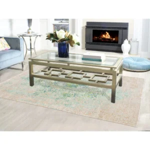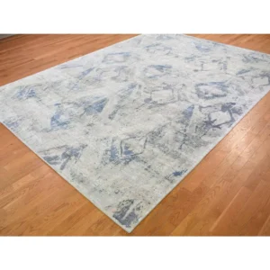 New Hand Knotted Ivory Wool & Sari Silk Rectangle Oriental Rug 8’10” x 12’0″