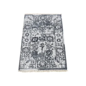 New Hand Knotted Ivory Wool & Silk Rectangle Oriental Rug 2’1″ x 3’2″