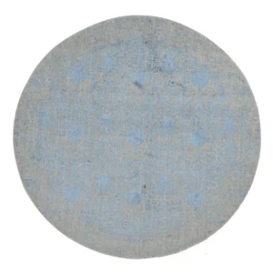 New Hand Loomed Grey Wool & Silk Round Oriental Rug 7’10” x 7’10”