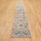 Condition: New Weave Type: Hand Knotted Shape: Runner Size: 2’6″ x 16’4″ Main Color: Beige Border Color: No Border Other Colors: Green, Yellow, Orange, Light Blue, Navy Blue, Red Top Material: Wool & Silk Base Material: Cotton Collection: Wool and Silk Rug Number: MOA10258966