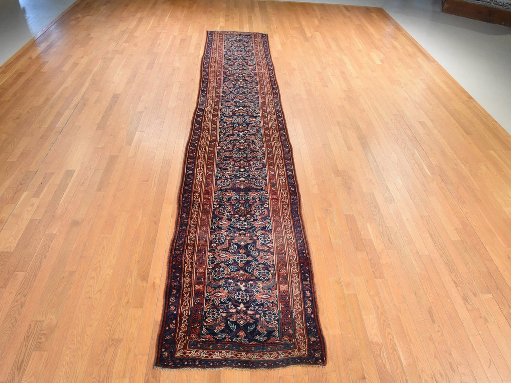 Condition: New Weave Type: Hand Knotted Shape: Runner Size: 3’4″ x 16’3″ Main Color: Blue Border Color: Red Other Colors: Ivory, Orange, Teal Top Material: Wool Base Material: Wool Collection: Antique Rug Number: MOA10278496