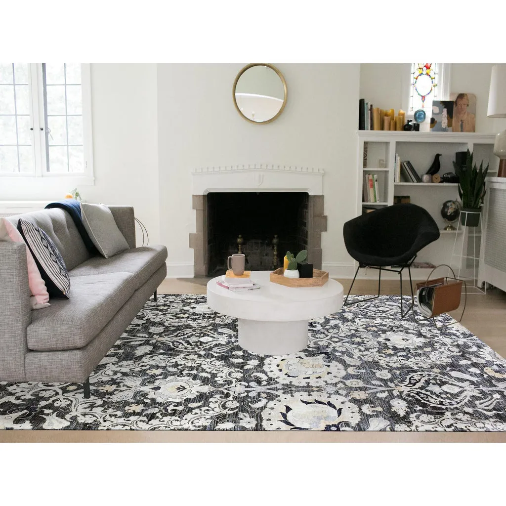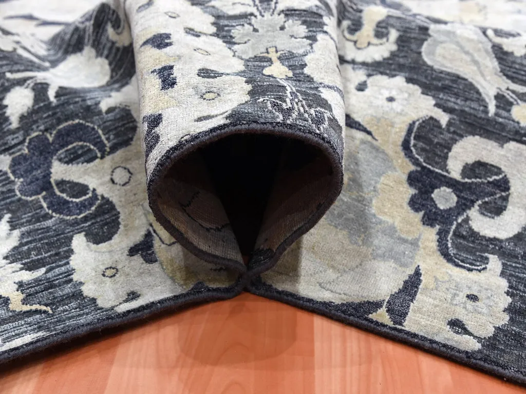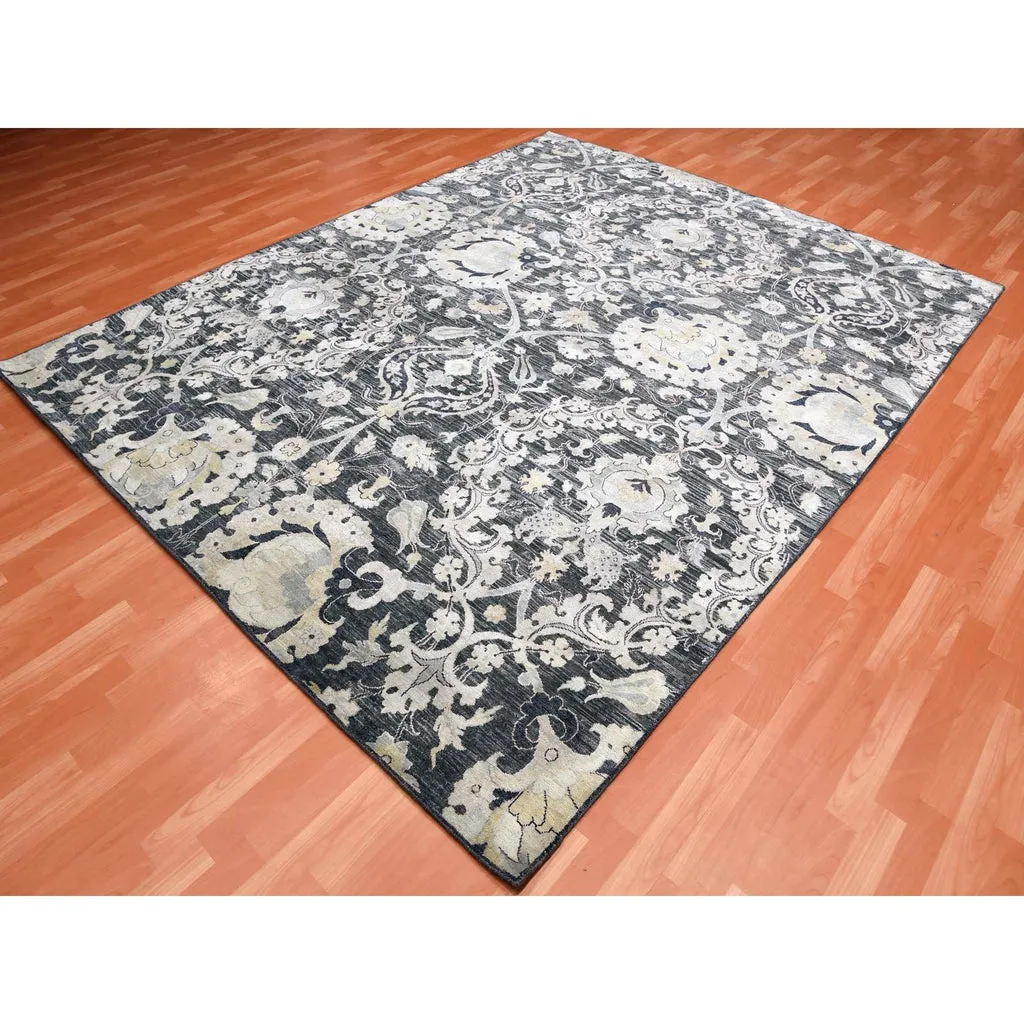 Condition: New Weave Type: Hand Knotted Shape: Rectangle Size: 8’2″ x 10’0″ Main Color: Blue Border Color: No Border Other Colors: Yellow, Ivory, Black Top Material: Wool & Sari Silk Base Material: Cotton Collection: Wool and Silk Rug Number: MOA10275121
