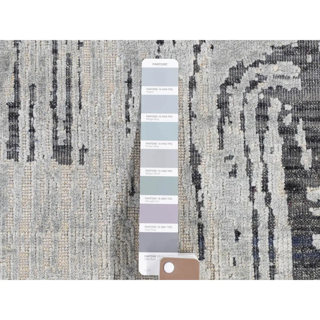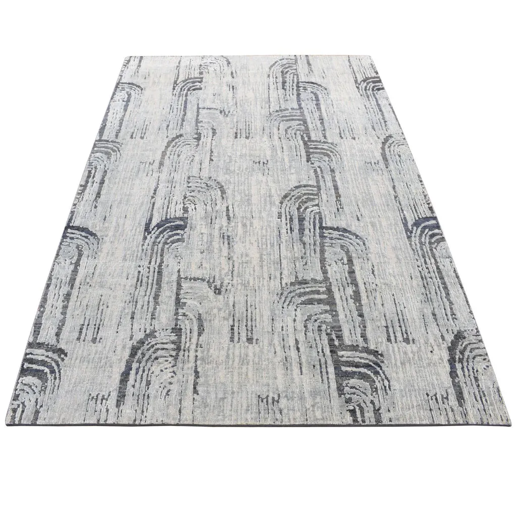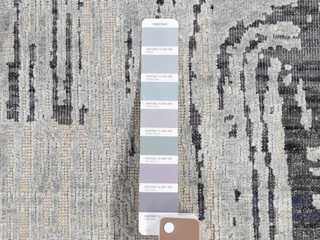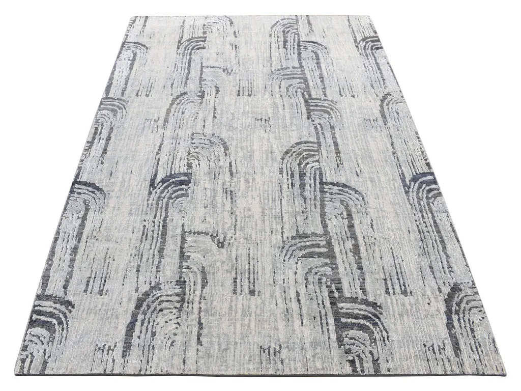Condition: New Weave Type: Hand Knotted Shape: Rectangle Size: 5’0″ x 7’1″ Main Color: Grey Border Color: No Border Other Colors: Dark Grey,Beige Top Material: Wool & Pure Silk Base Material: Cotton Collection: Wool and Silk Rug Number: MOA10280768