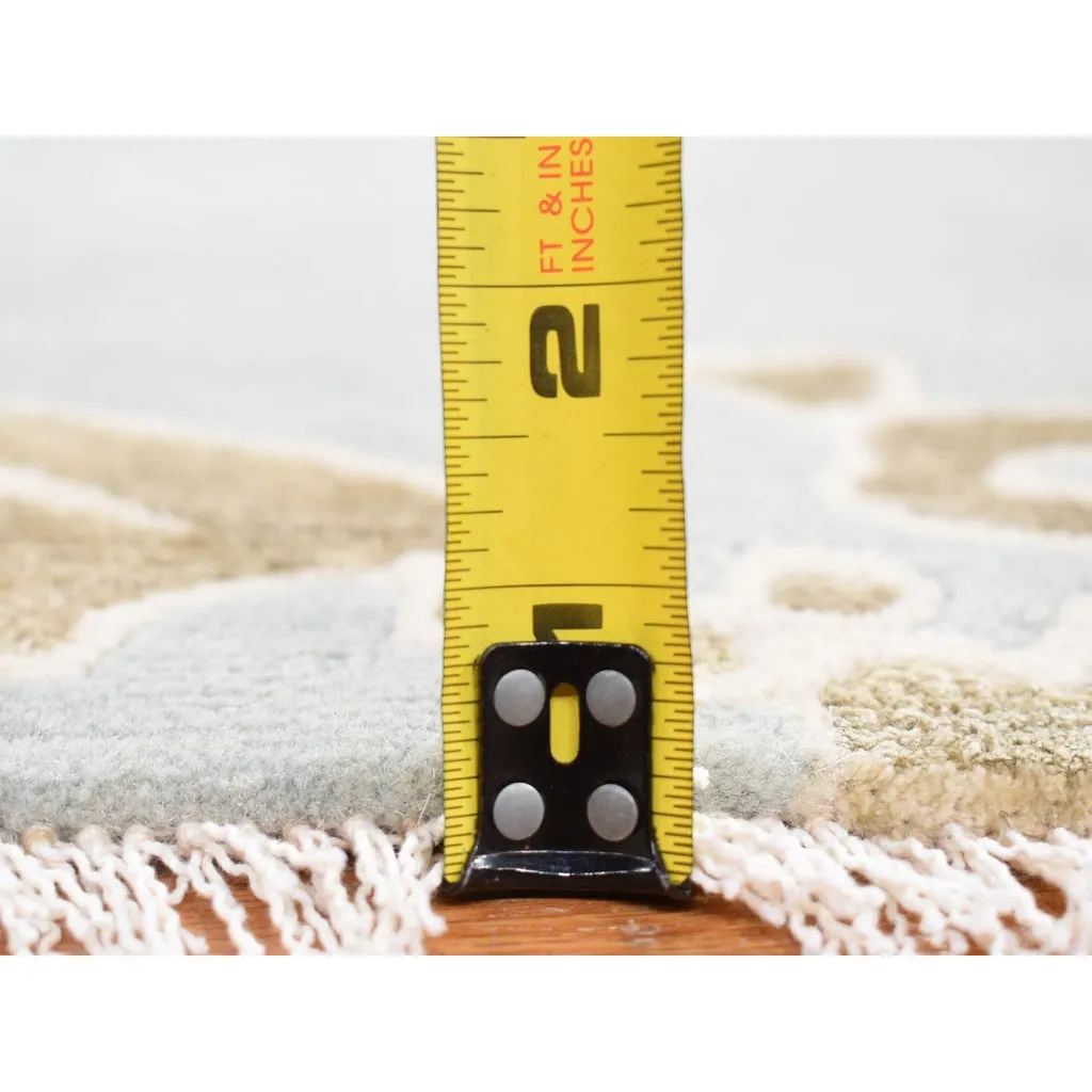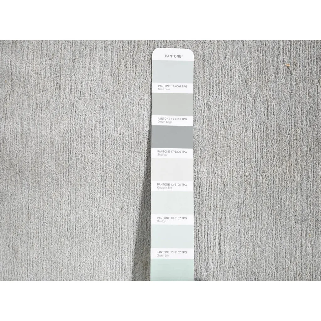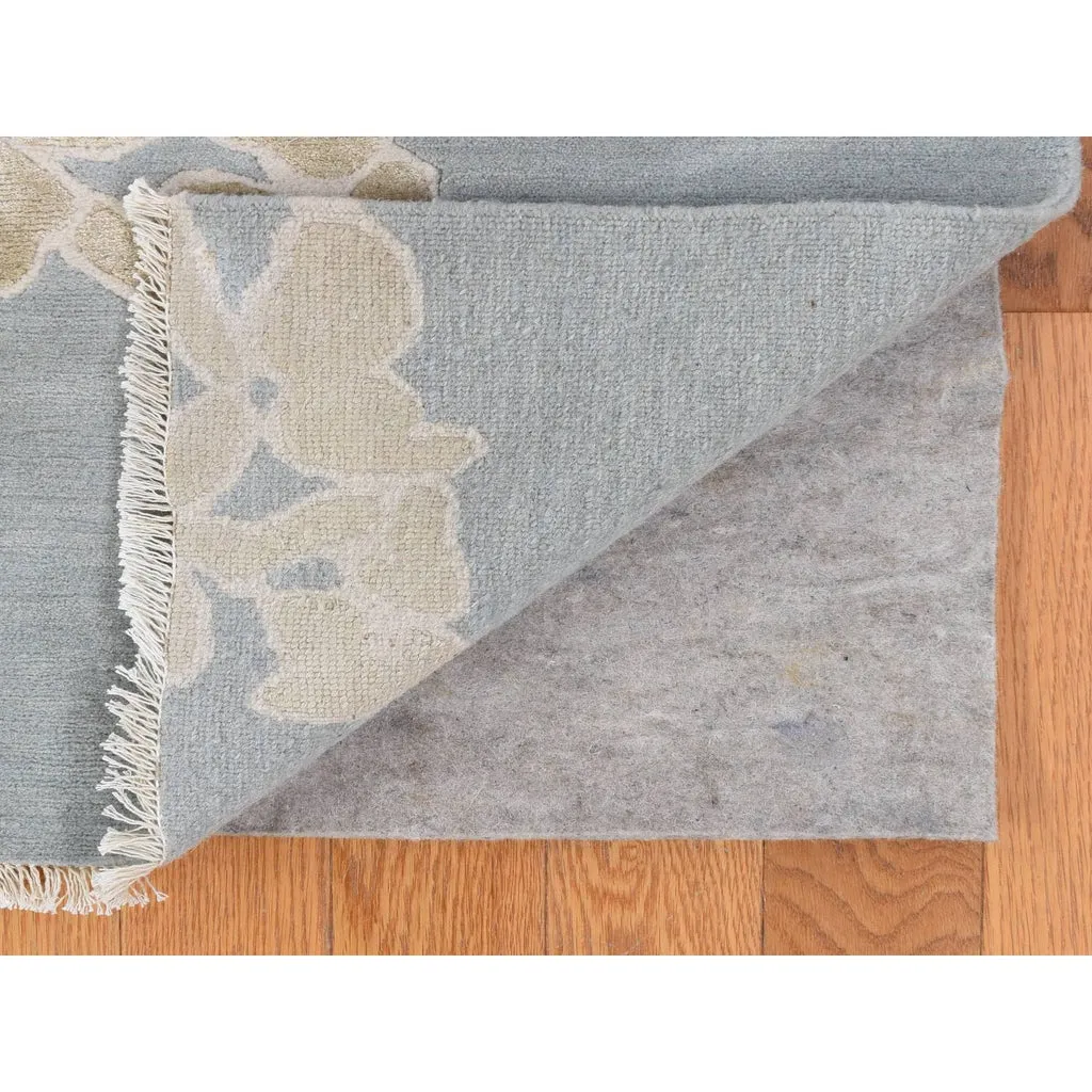 Condition: New Weave Type: Hand Knotted Shape: Runner Size: 5’4″ x 10’7″ Main Color: Grey Border Color: No Border Other Colors: Gold, Ivory Top Material: Wool Base Material: Cotton Collection: Wool and Silk Rug Number: MOA10280306