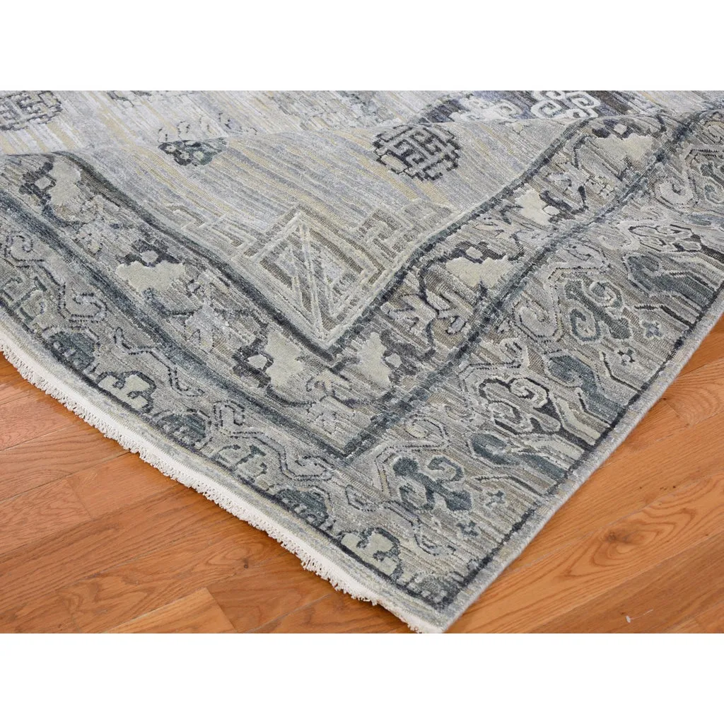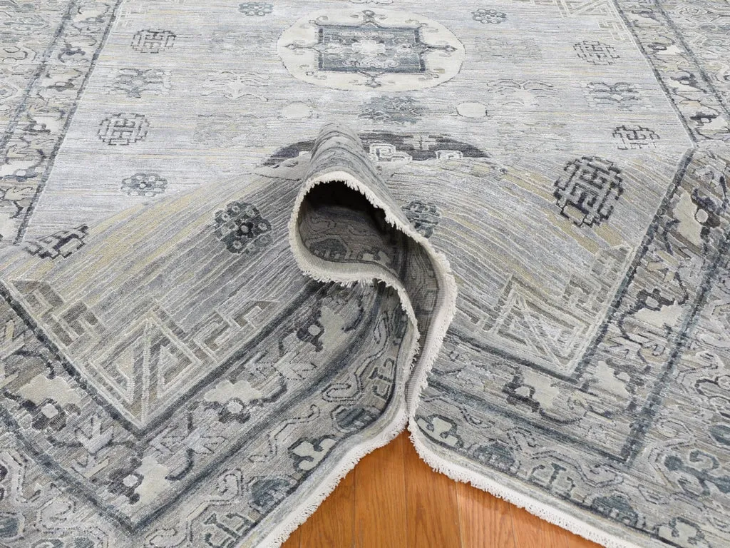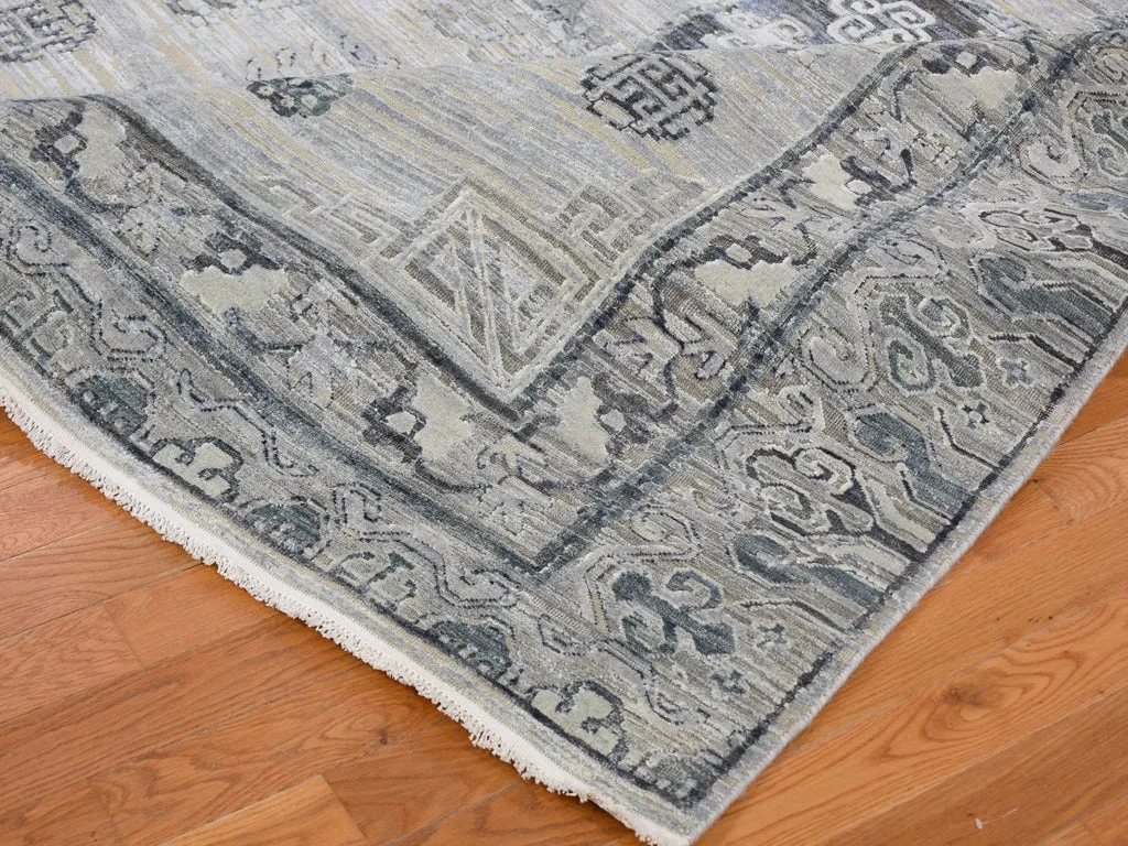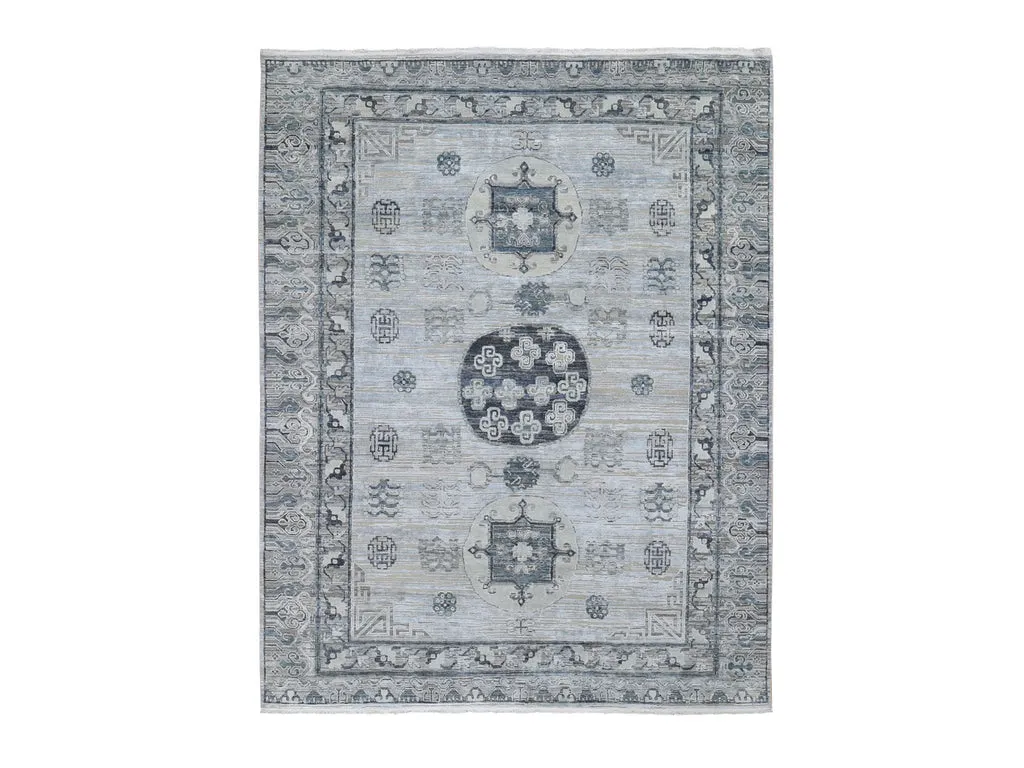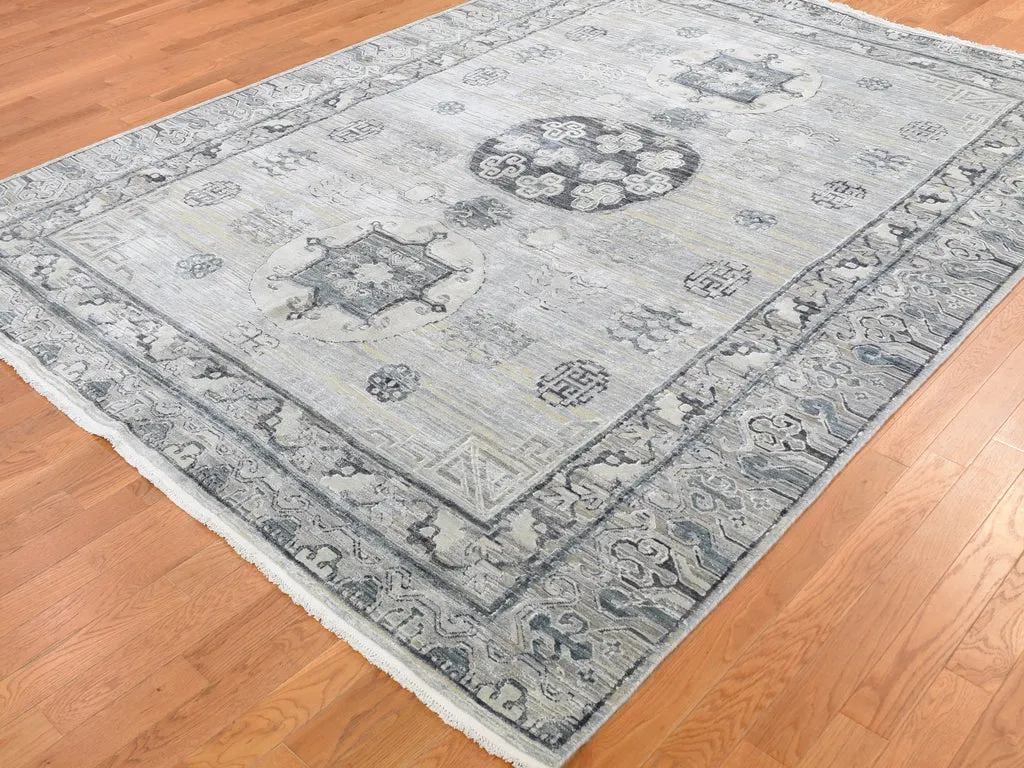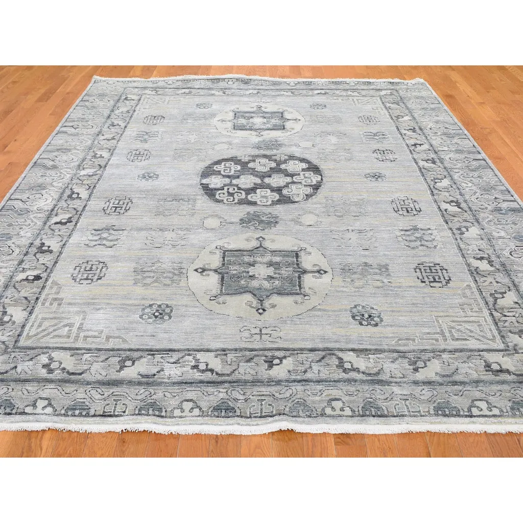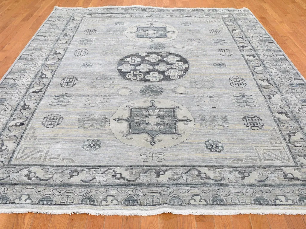 Condition: New Weave Type: Hand Knotted Shape: Rectangle Size: 7’9″ x 9’10” Main Color: Grey Border Color: No Border Other Colors: Charcoal Gray, Beige, Ivory, Silver Top Material: Wool & Silk Base Material: Cotton Collection: Wool and Silk Rug Number: MOA10259261