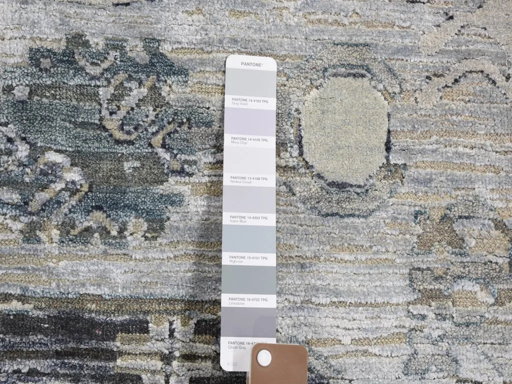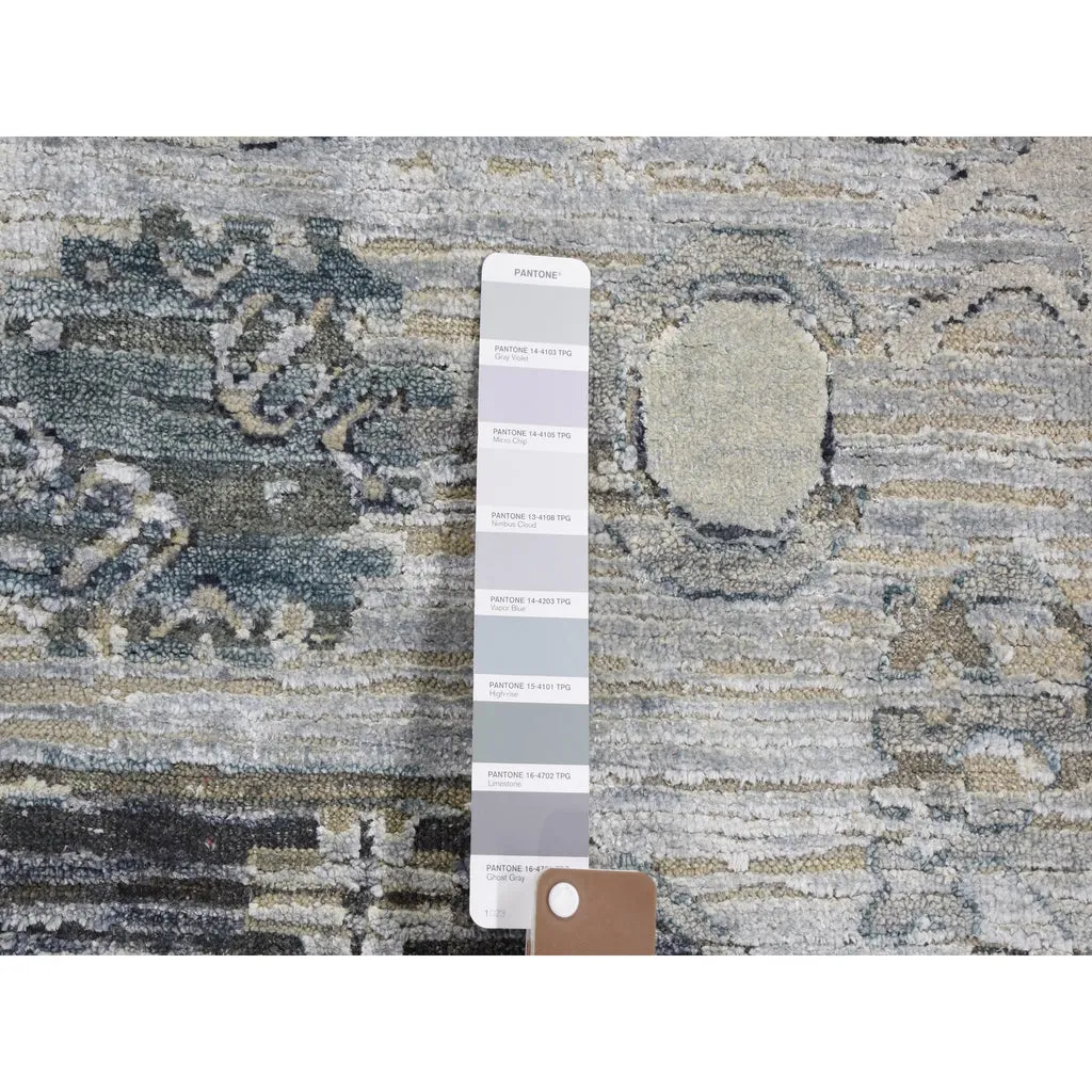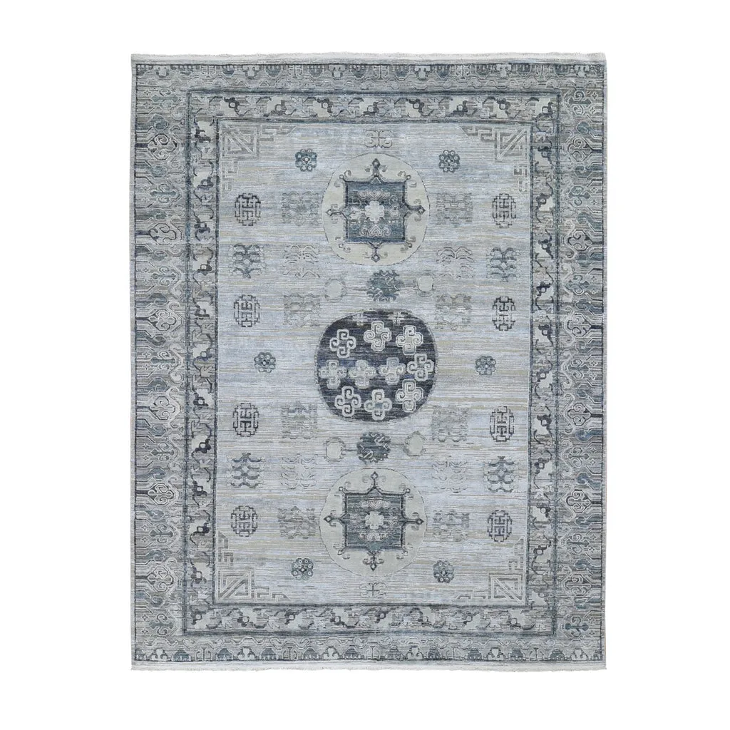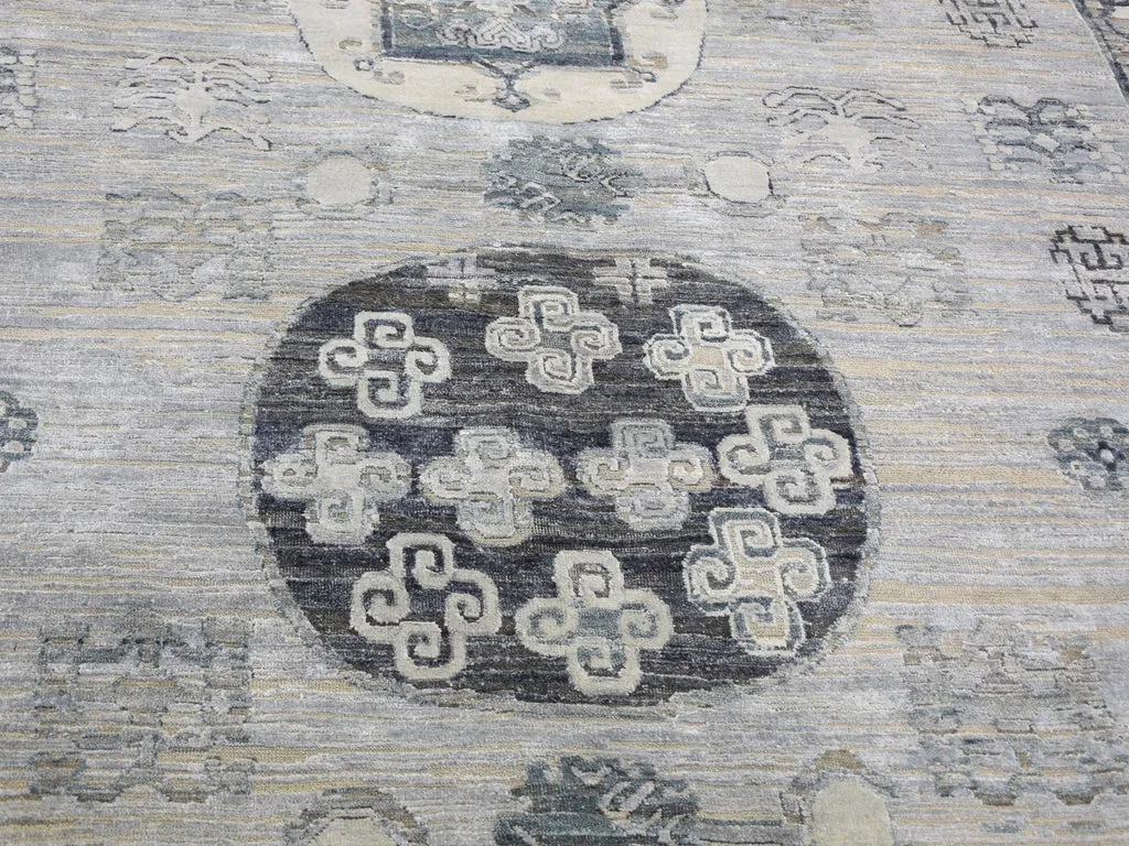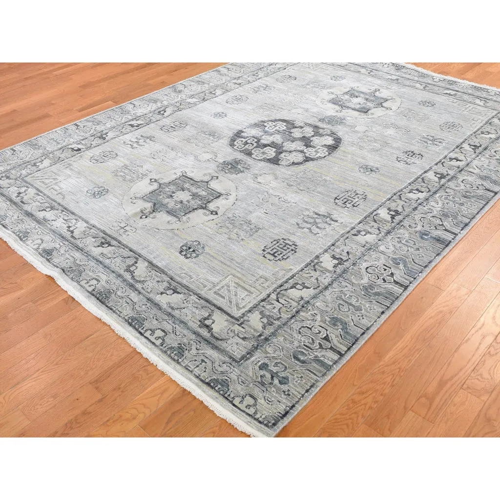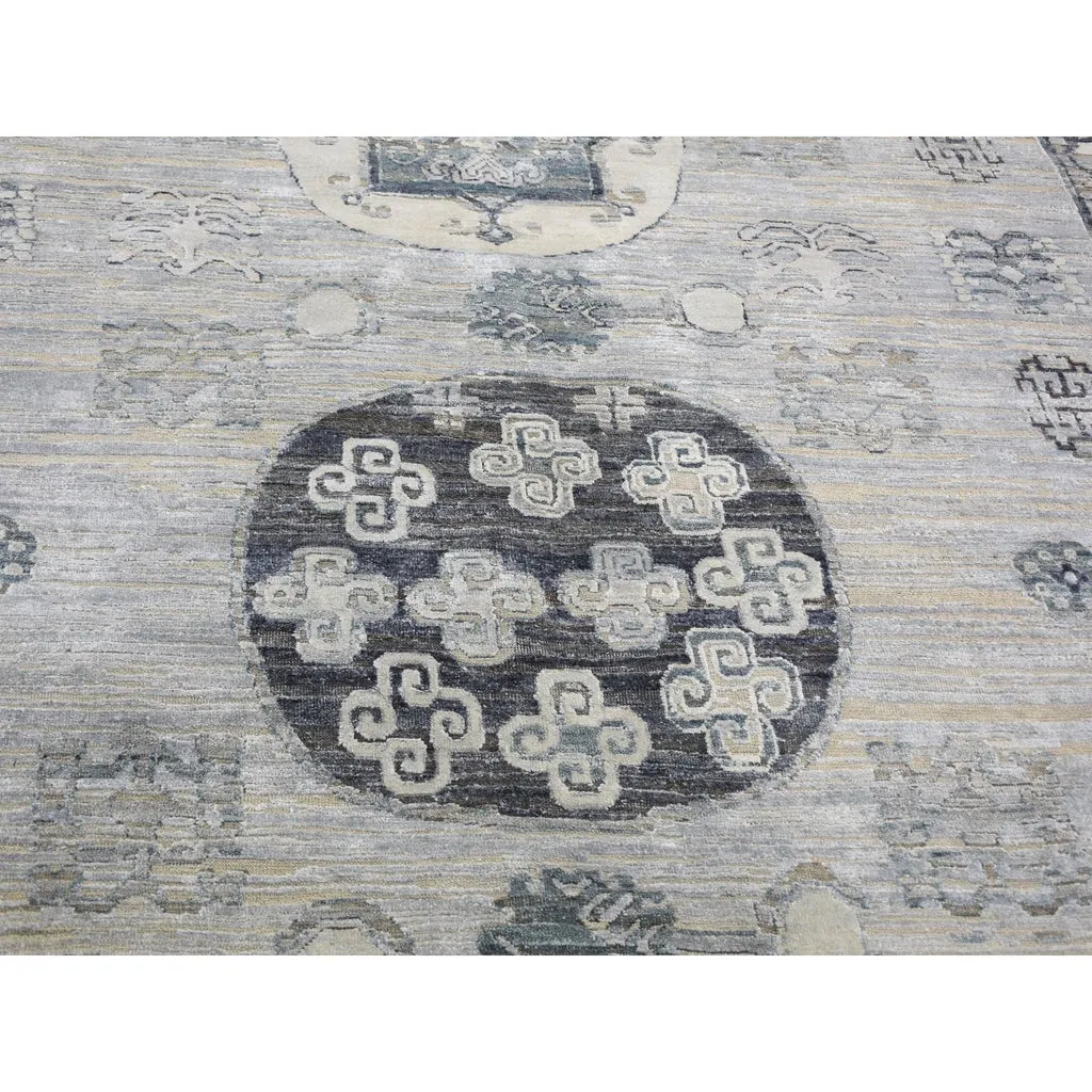 Condition: New Weave Type: Hand Knotted Shape: Rectangle Size: 7’9″ x 9’10” Main Color: Grey Border Color: No Border Other Colors: Charcoal Gray, Beige, Ivory, Silver Top Material: Wool & Silk Base Material: Cotton Collection: Wool and Silk Rug Number: MOA10259261