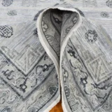 Condition: New Weave Type: Hand Knotted Shape: Rectangle Size: 8’10” x 12’1″ Main Color: Grey Border Color: No Border Other Colors: Charcoal Gray, Beige, Ivory, Silver Top Material: Wool & Silk Base Material: Cotton Collection: Wool and Silk Rug Number: MOA10259370
