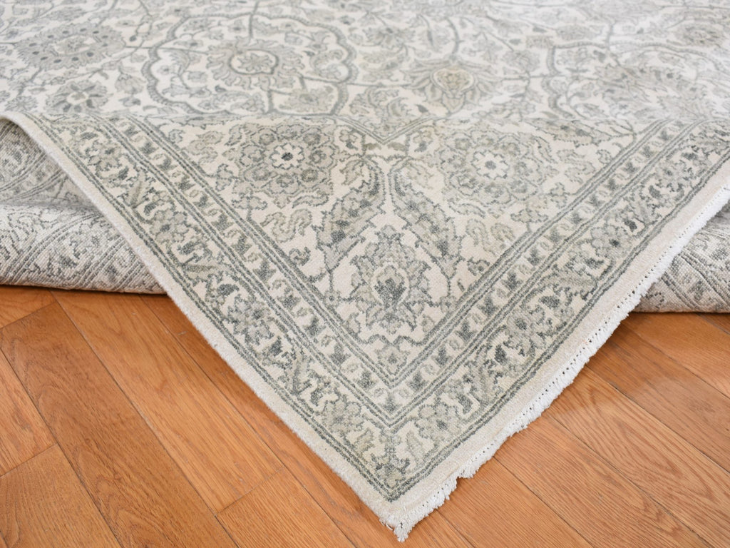 Condition: New Weave Type: Hand Knotted Shape: Rectangle Size: 8’10” x 12’0″ Main Color: Ivory Border Color: No Border Other Colors: Green, Gray Top Material: Silk Base Material: Cotton Collection: Silk Rug Number: MOA10287155