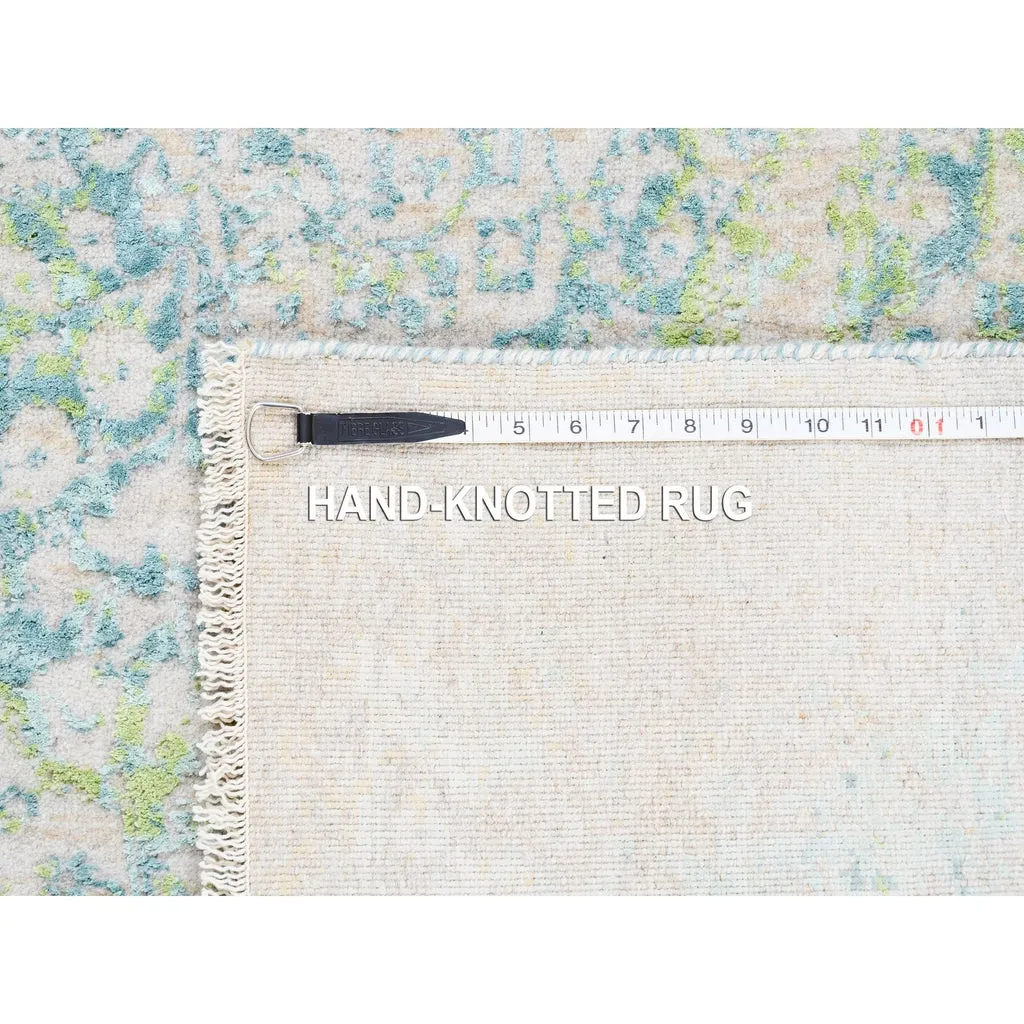 Condition: New Weave Type: Hand Knotted Shape: Rectangle Size: 5’0″ x 7’0″ Main Color: Ivory Border Color: No Border Other Colors: Beige, Green, Blue Top Material: Wool & Pure Silk Base Material: Cotton Collection: Wool and Silk Rug Number: MOA10262354