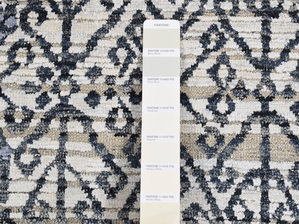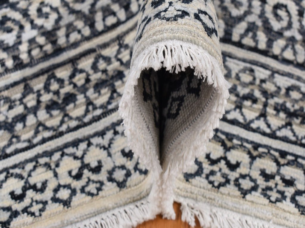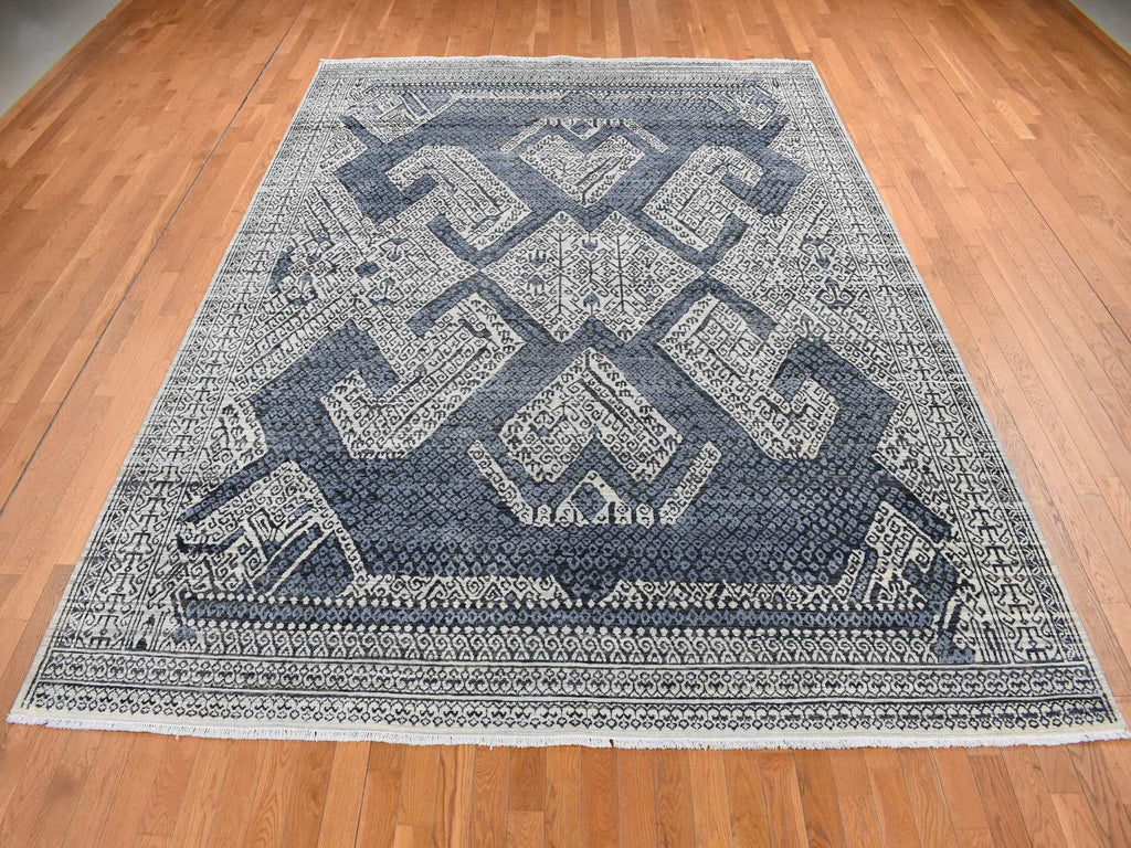 Condition: New Weave Type: Hand Knotted Shape: Rectangle Size: 9’0″ x 12’3″ Main Color: Ivory Border Color: Ivory Other Colors: Millennium Blue, Beige Top Material: Wool & Silk Base Material: Cotton Collection: Silk Rug Number: MOA10287079
