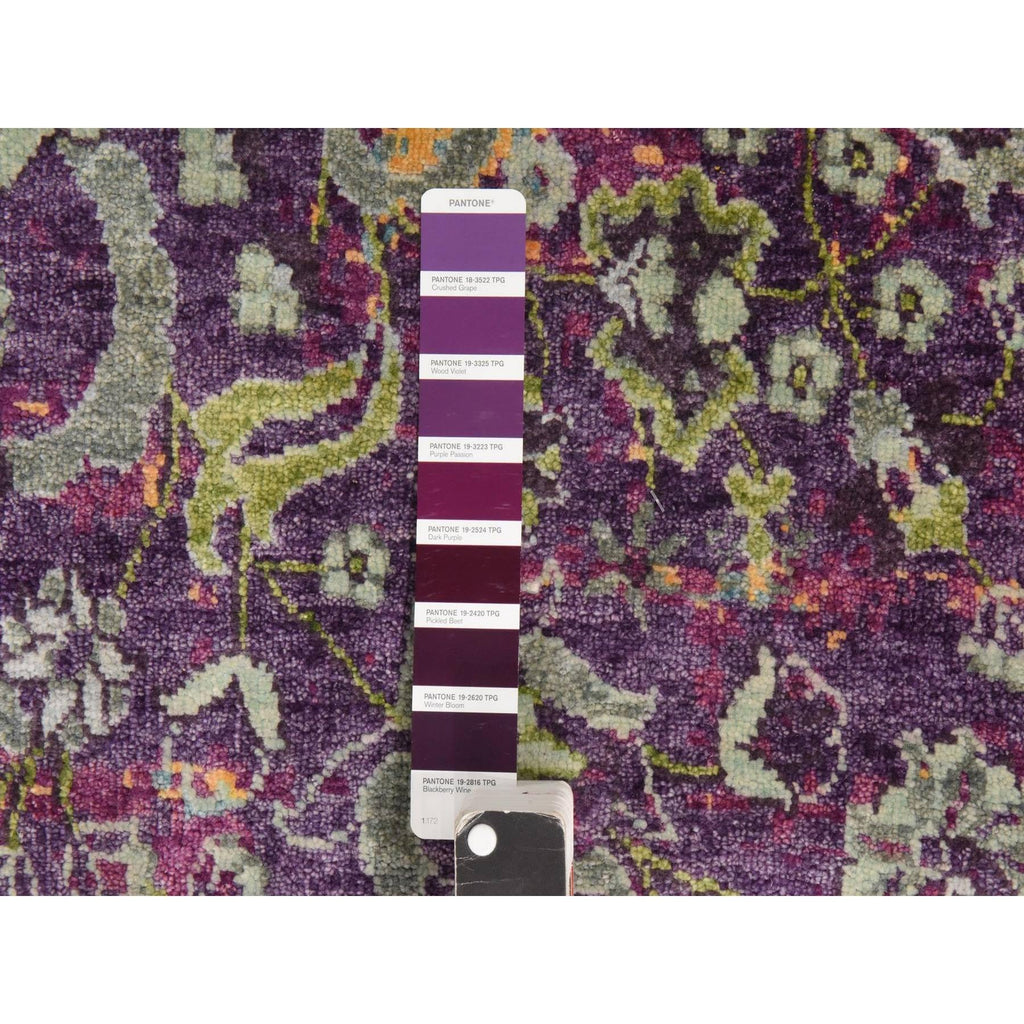 Condition: New Weave Type: Hand Knotted Shape: Rectangle Size: 2’0″ x 3’1″ Main Color: Purple Border Color: No Border Other Colors: Ivory, Green, Gray, Pink, Orange Top Material: Silk Base Material: Cotton Collection: Silk Rug Number: MOA10278446