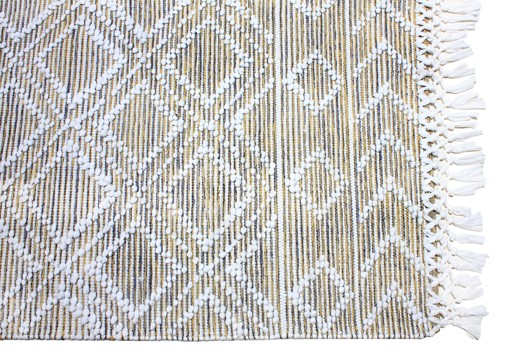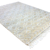 Oslo Collection kilims are handmade from 100% cotton yarn. The modern embellishments—featuring fabric, trims, and stitching details—add refined character to the design, while certain auxiliary elements may contain polyester for decorative purposes. Blending the warmth of natural materials with the quality of handcrafted workmanship, Oslo kilims bring a stylish and distinctive touch to your home. They can be used comfortably in many living areas such as the living room, sitting room, bedroom, kitchen, hallway, and entryway. They also maintain their elegance in summer homes and winter gardens, perfectly complementing your décor. (Note: Not suitable for outdoor use.)