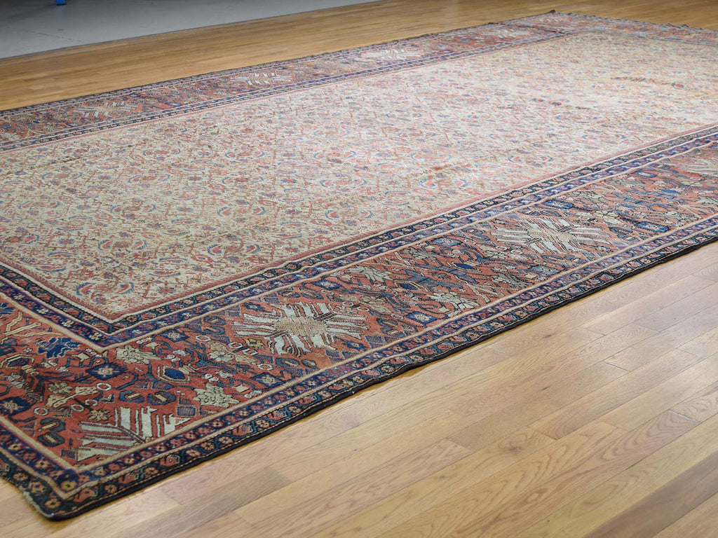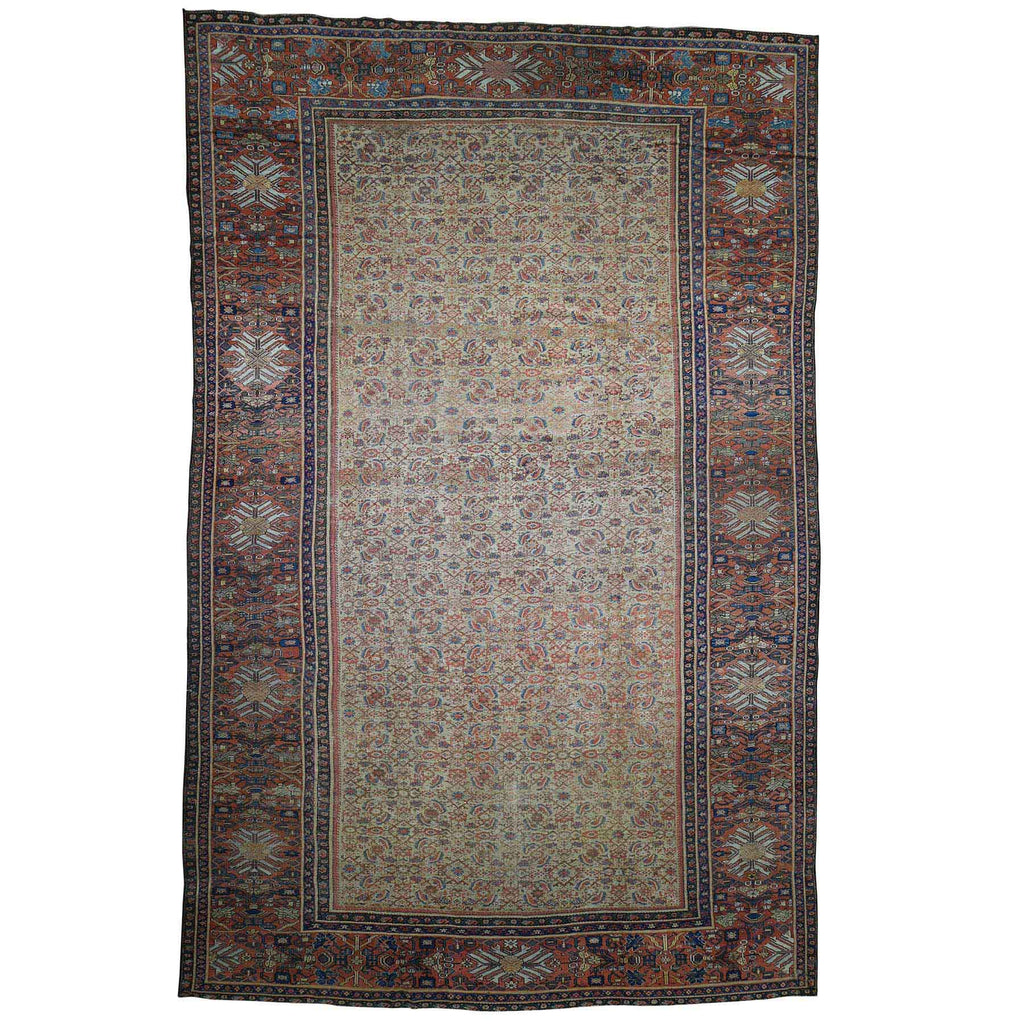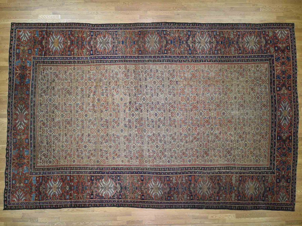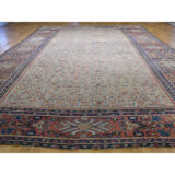 Condition: Used Weave Type: Hand Knotted Shape: Rectangle Size: 12’0″ x 18’3″ Main Color: Beige Border Color: Rust Red Other Colors: Denim Blue, Ivory, Black, Greenish Blue, Silver Blue Top Material: Wool Base Material: Cotton Collection: Antique Rug Number: MOA10240817