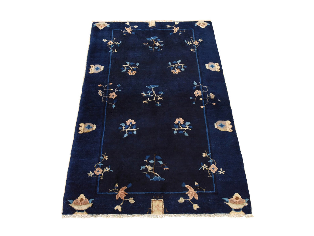 Condition: Used Weave Type: Hand Knotted Shape: Rectangle Size: 3’0″ x 4’6″ Main Color: Blue Border Color: Blue Other Colors: Light Blue, Peach, Brown Top Material: Wool Base Material: Cotton Collection: Antique Rug Number: MOA10278479