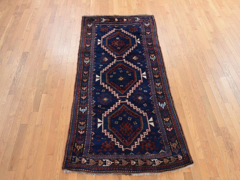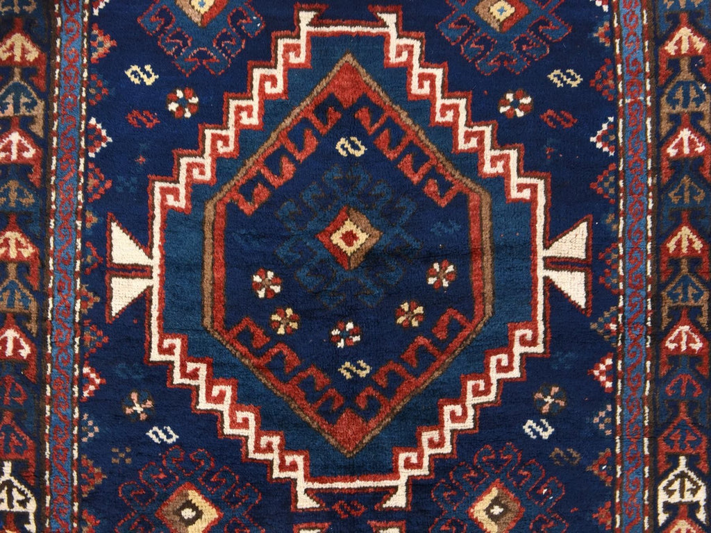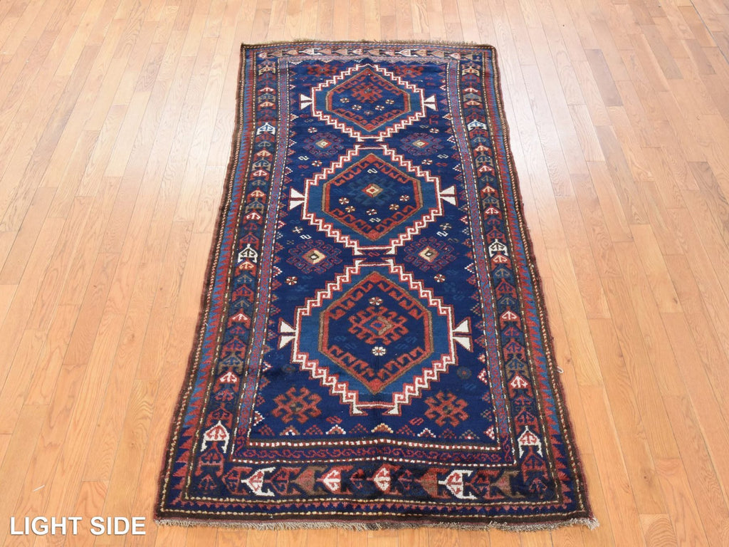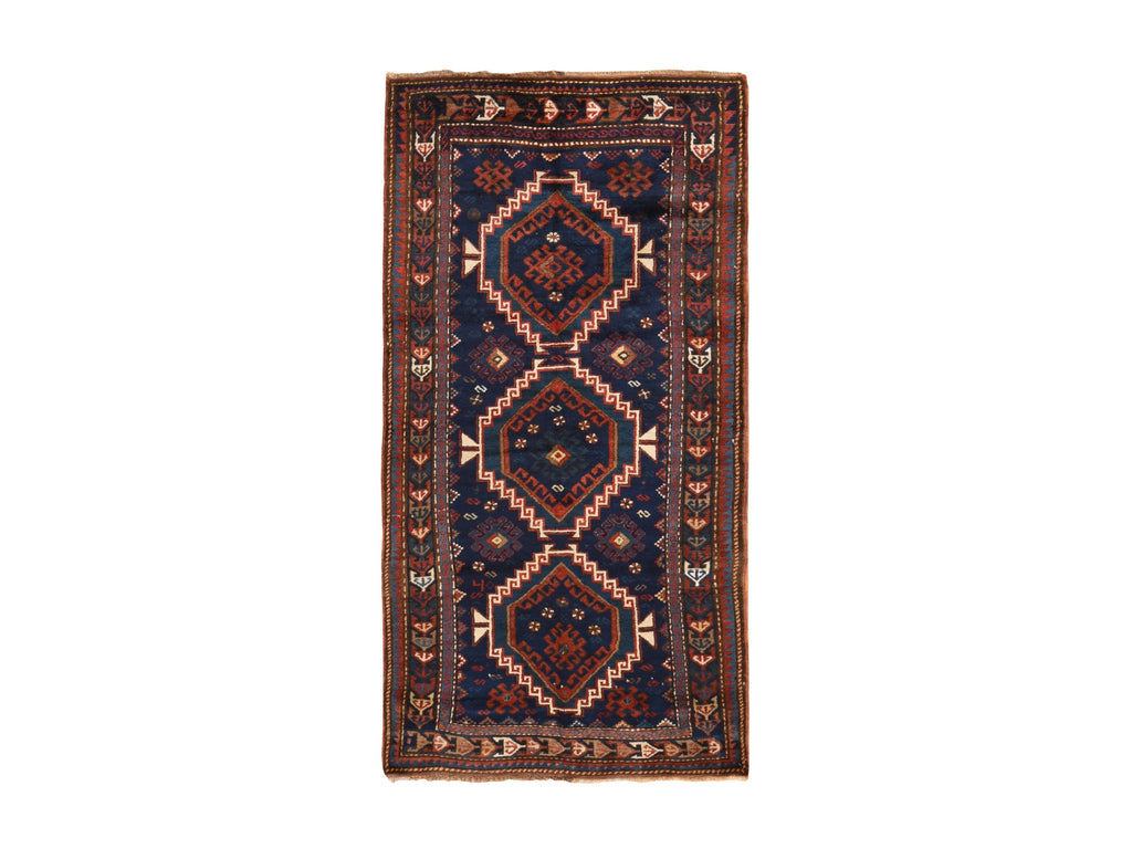 Condition: Used Weave Type: Hand Knotted Shape: Rectangle Size: 4’0″ x 8’0″ Main Color: Blue Border Color: Blue Other Colors: Red, Brown, Ivory Top Material: Wool Base Material: Wool Collection: Antique Rug Number: MOA10278494