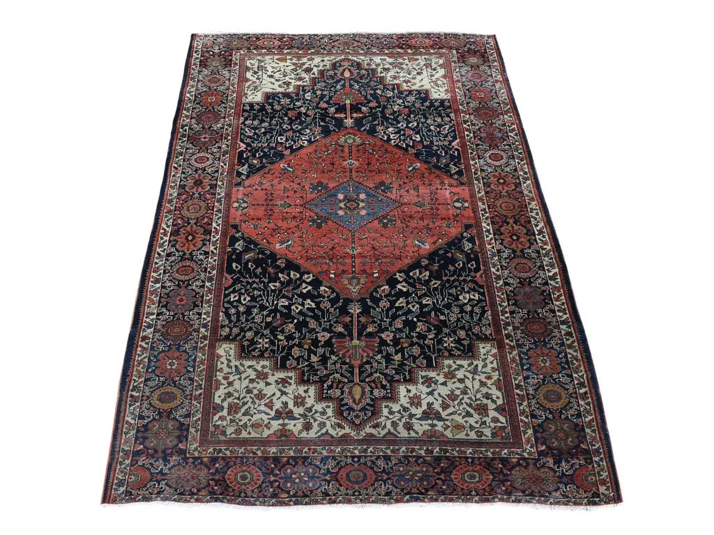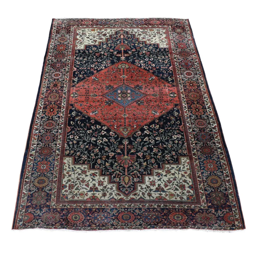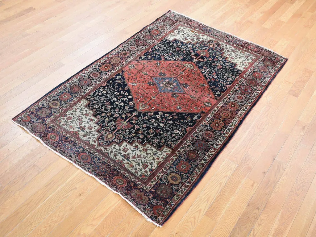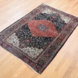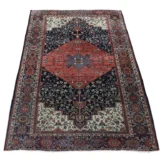 Condition: Used Weave Type: Hand Knotted Shape: Rectangle Size: 4’2″ x 6’6″ Main Color: Blue Border Color: Midnight Blue Other Colors: Ivory, Yellow, Black, Blue, Orange Top Material: Wool Base Material: Cotton Collection: Persian Rug Number: MOA10280601