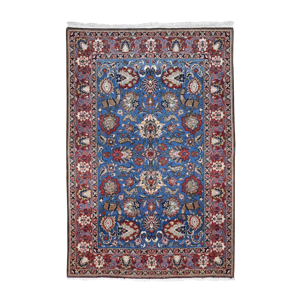 Condition: Used Weave Type: Hand Knotted Shape: Rectangle Size: 4’8″ x 7’0″ Main Color: Blue Border Color: Red Other Colors: Coral, Beige, Brown, Black, Ivory Top Material: Wool Base Material: Cotton Collection: Persian Rug Number: MOA10248706
