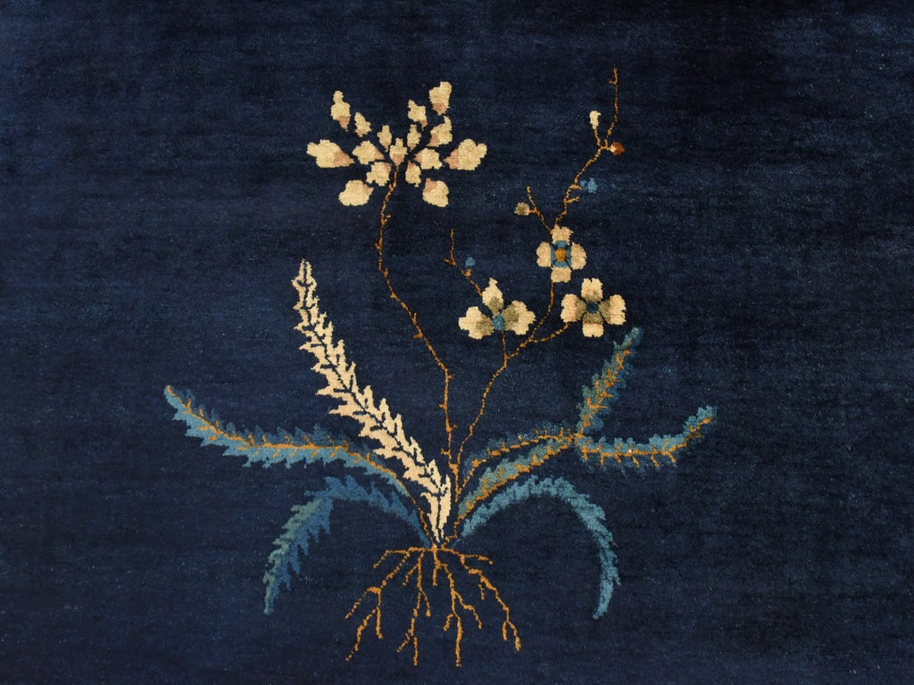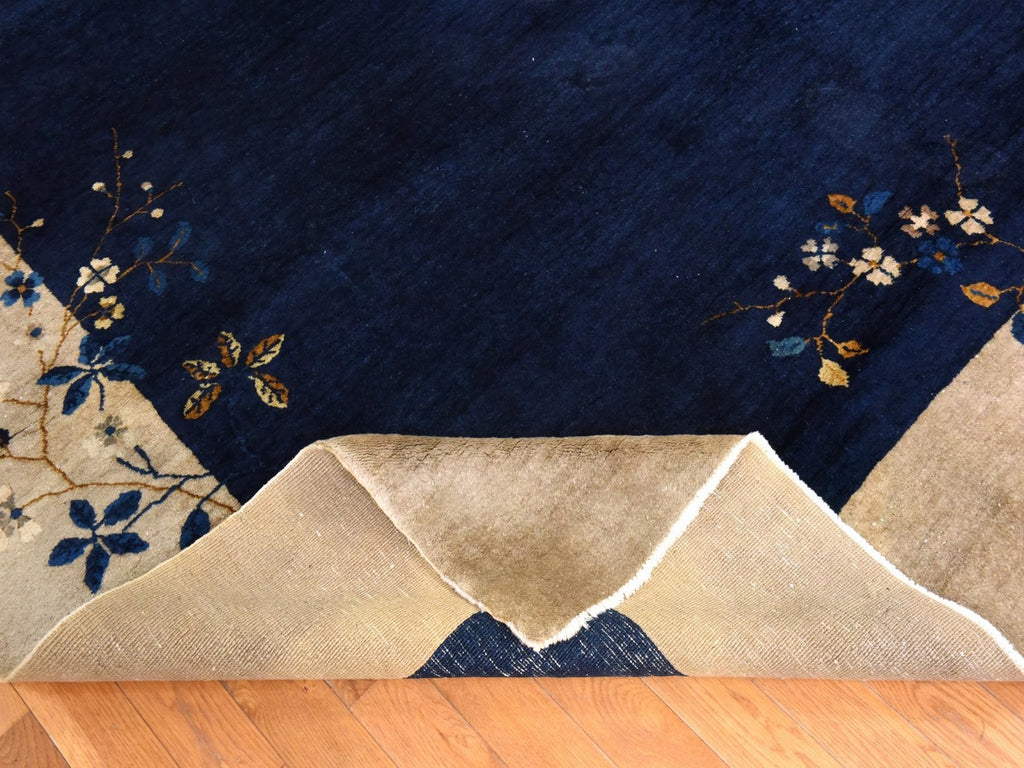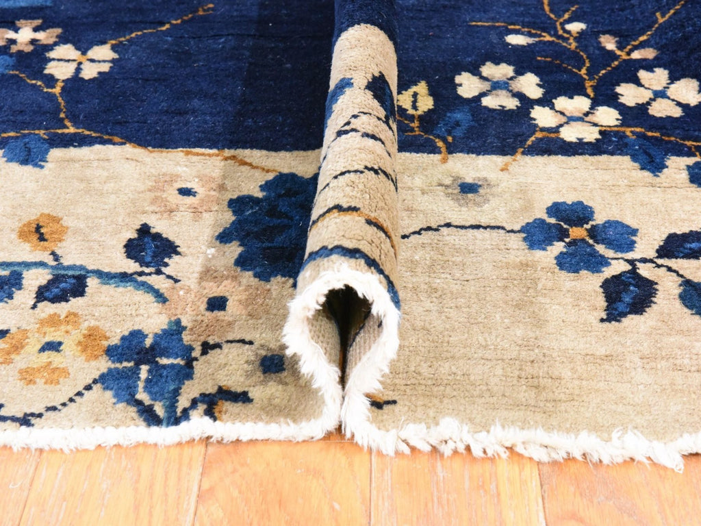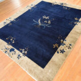 Condition: Used Weave Type: Hand Knotted Shape: Rectangle Size: 9’2″ x 11’2″ Main Color: Blue Border Color: Ivory Other Colors: Orange, Yellow, Denim Blue Top Material: Wool Base Material: Cotton Collection: Antique Rug Number: MOA10278426