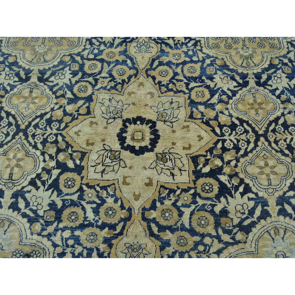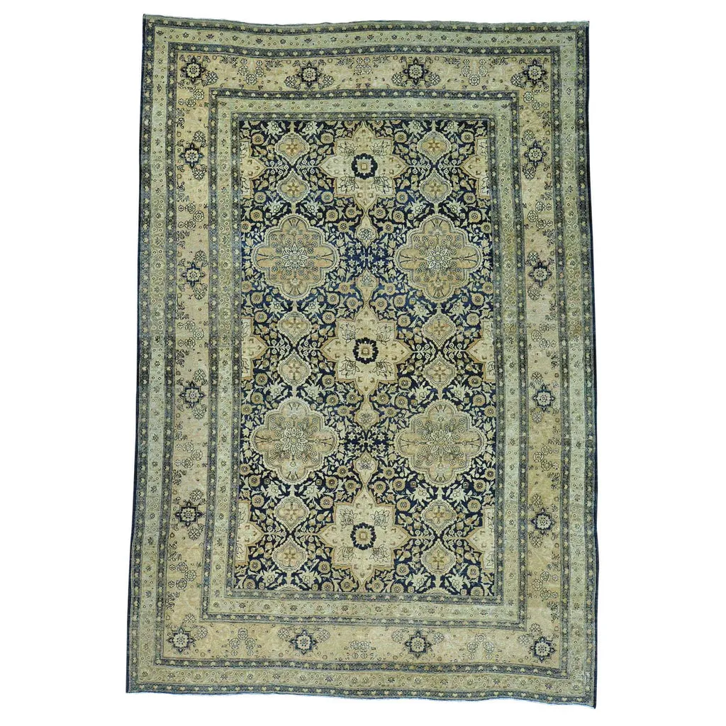 Condition: Used Weave Type: Hand Knotted Shape: Rectangle Size: 9’5″ x 14’0″ Main Color: Blue Border Color: Beige Other Colors: Gold, Olive Green Top Material: Wool Base Material: Cotton Collection: Persian Rug Number: MOA10225861