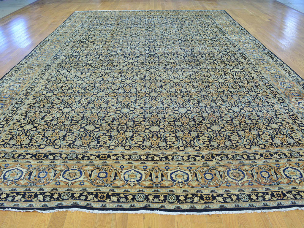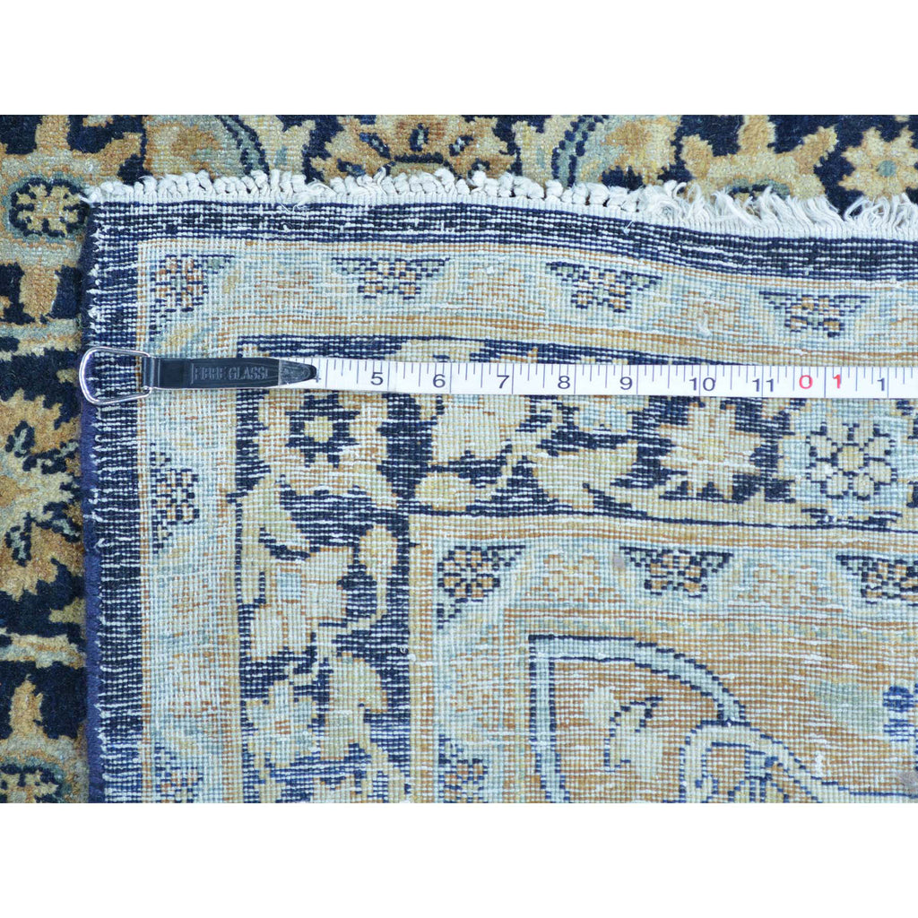 Condition: Used Weave Type: Hand Knotted Shape: Runner Size: 10’10” x 17’0″ Main Color: Blue Border Color: Gold Other Colors: Sky Blue, Beige, Light Brown, Denim Blue Top Material: Wool Base Material: Cotton Collection: Antique Rug Number: MOA10226426