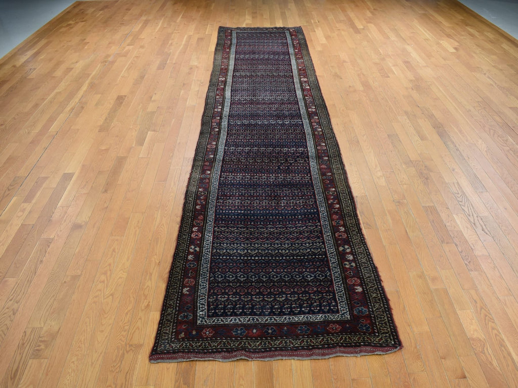 Condition: Used Weave Type: Hand Knotted Shape: Runner Size: 3’7″ x 16’6″ Main Color: Blue Border Color: Red Other Colors: Brown, Sand Color, Ivory Top Material: Wool Base Material: Cotton Collection: Antique Rug Number: MOA10287914