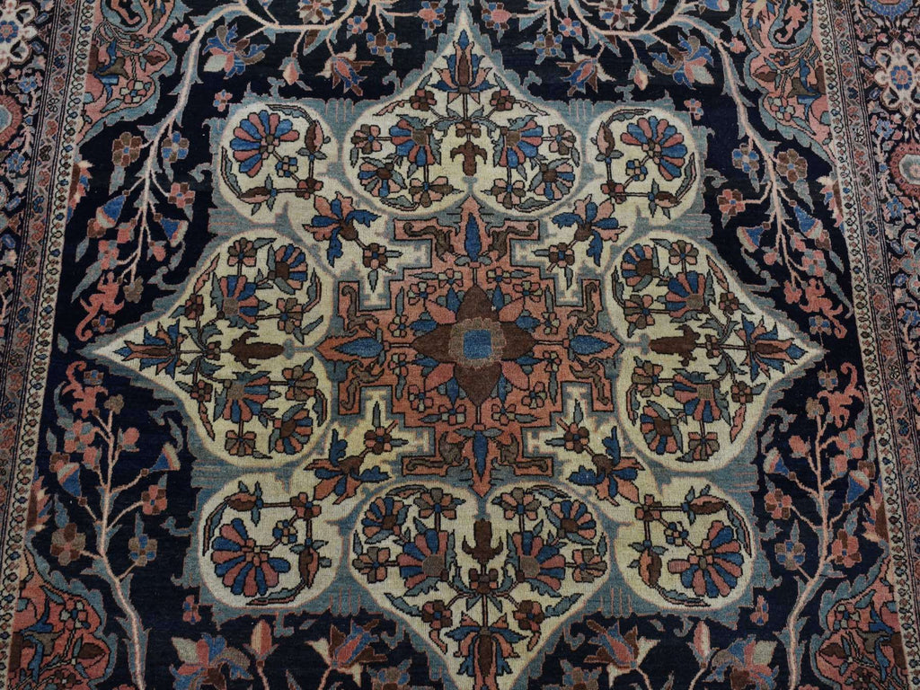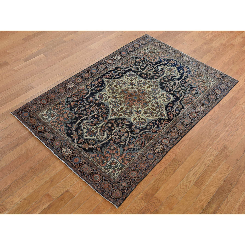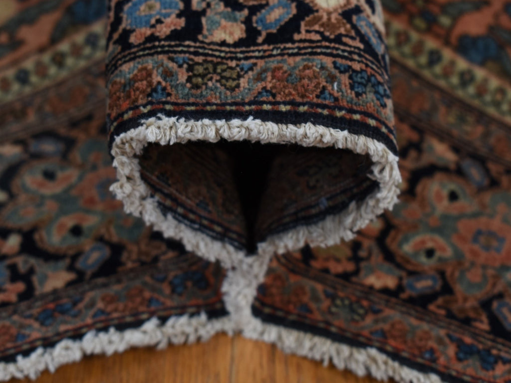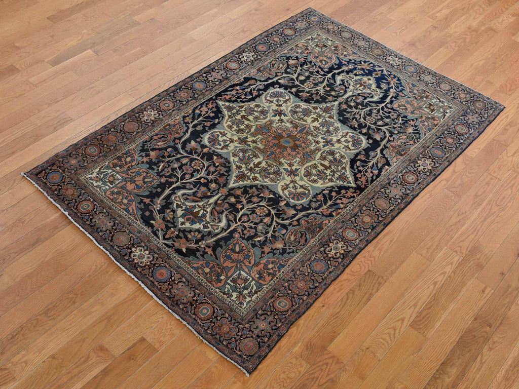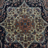 Condition: Used Weave Type: Hand Knotted Shape: Rectangle Size: 4’4″ x 6’9″ Main Color: Brown Border Color: Brown Other Colors: Ivory, Peach, Green, Chocolate Brown, Navy Blue Top Material: Wool Base Material: Cotton Collection: Antique Rug Number: MOA10287639