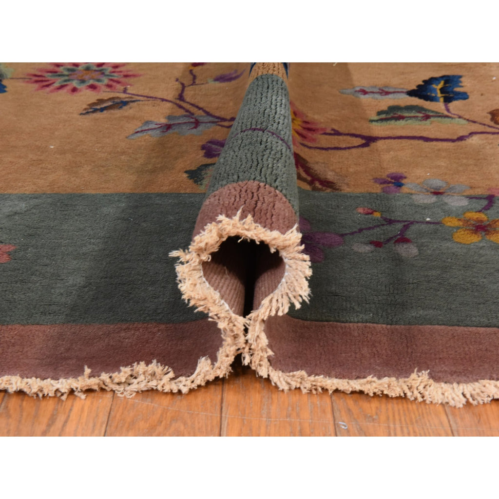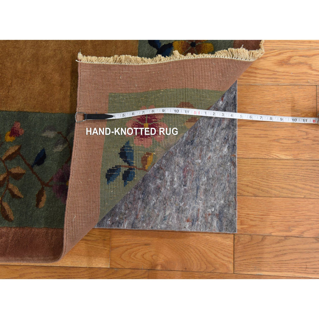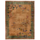 Condition: Used Weave Type: Hand Knotted Shape: Rectangle Size: 9’0″ x 11’5″ Main Color: Brown Border Color: Green Other Colors: Pink, Red, Yellow, Violet, Blue, Green, Gray Top Material: Wool Base Material: Cotton Collection: Antique Rug Number: MOA10278399